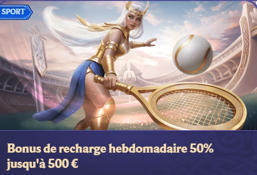 50 % jusqu’à 500 €, disponible toute la semaine pour soutenir les joueurs réguliers.
