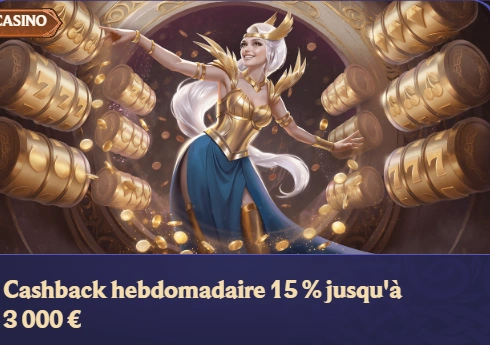 Ce cashback hebdomadaire permet aux joueurs VIP de récupérer une partie de leurs pertes de la semaine. Il est calculé automatiquement en fonction du niveau VIP et du montant perdu, et est crédité directement sur le compte du joueur. Avec un wagering x1, ce bonus est très facile à utiliser et peut être immédiatement transformé en argent réel.