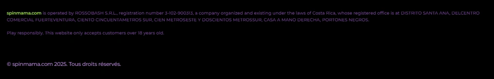Bien que Spin Mama ne figure pas parmi les opérateurs régulés par la Commission des Jeux de Hasard belge (CJH), le site fonctionne sous une licence internationale (3-102-900313) délivrée par la juridiction du Costa Rica. Il applique des protocoles de sécurité conformes aux standards européens, notamment un chiffrement SSL 128 bits et une authentification TLS 1.2 garantissant la confidentialité des transactions.