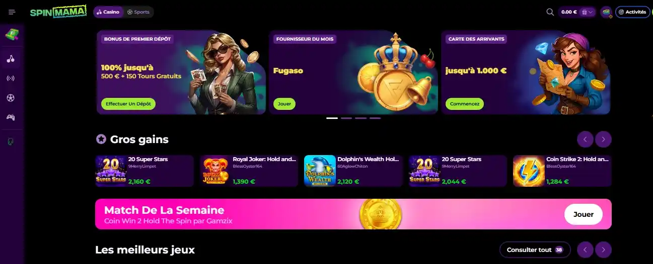 Spin Mama fait partie de la nouvelle vague de casinos en ligne récents, conçus pour offrir une expérience moderne et techniquement avancée aux joueurs. Il met l’accent sur la rapidité, la sécurité et une offre de jeux par des fournisseurs réputés. Dans cet avis SpinMama, nous évaluons la fiabilité de la plateforme, ses protocoles de sécurité, la qualité de son support et la solidité de ses engagements en matière de jeu responsable.