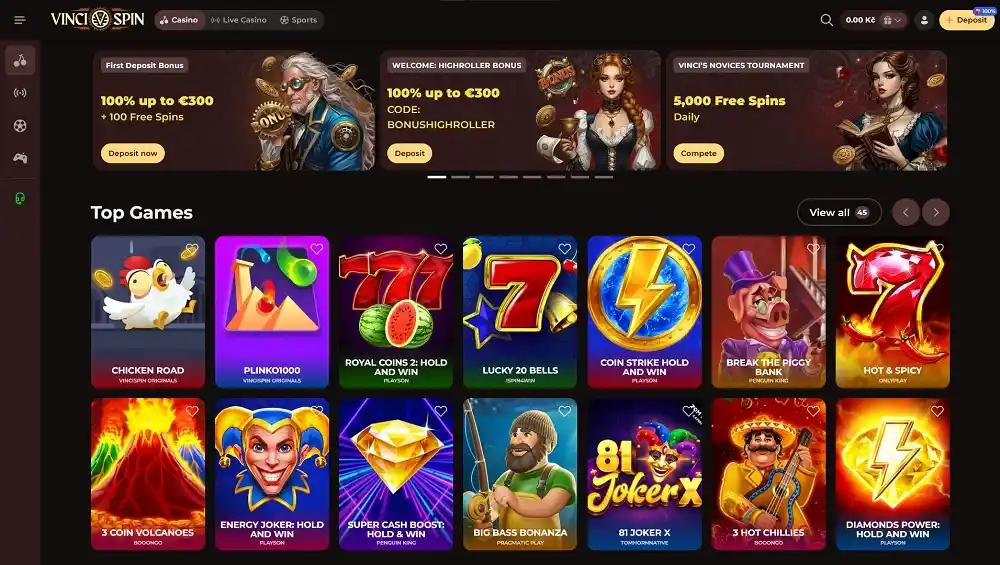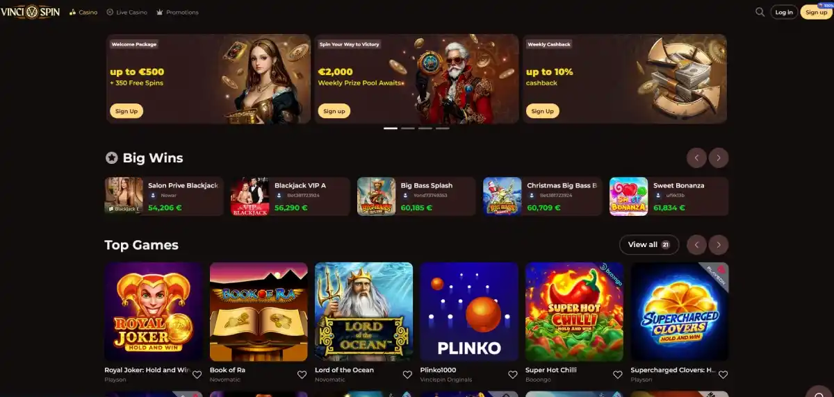 Jeux en direct sur VinciSpin Online Casino