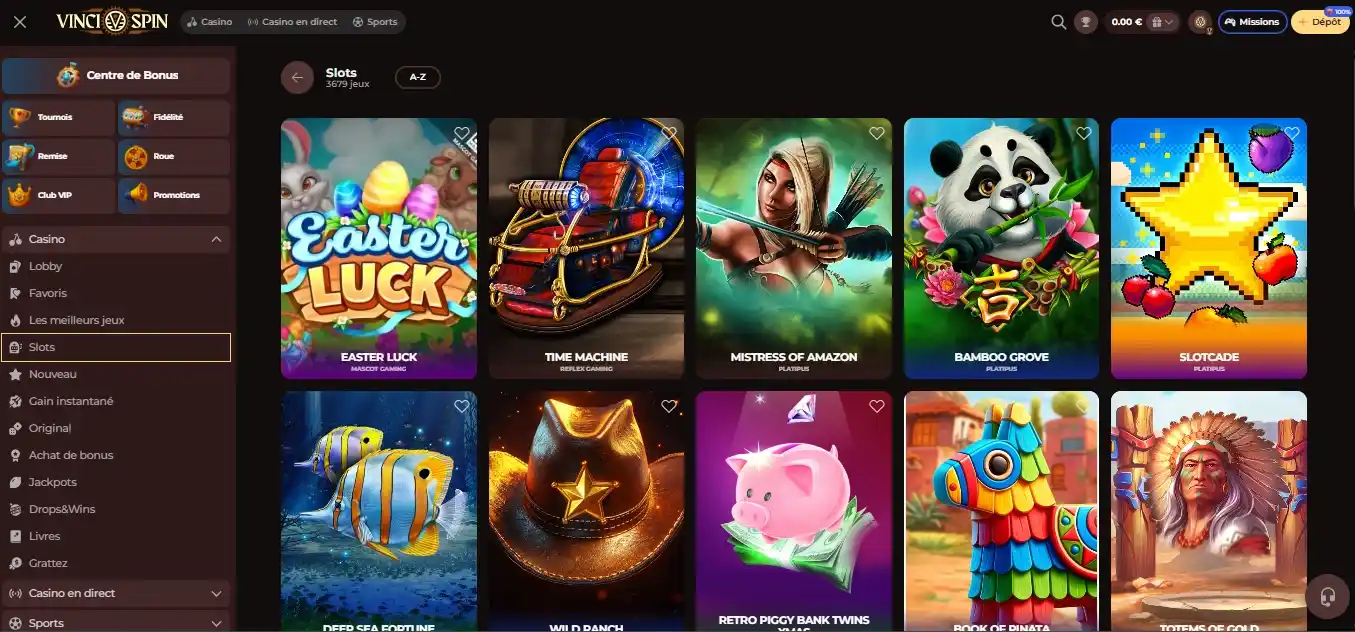 Dépôts sur Casino VinciSpin