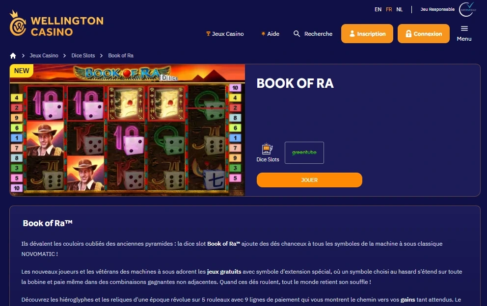 Pour Ă©valuer la fluiditĂ© du site et la qualitĂ© des titres, nous avons testĂ© Book of Raâą, un classique signĂ© Novomatic, disponible dans la catĂ©gorie Dice Slots. La session a durĂ© environ 10 minutes, avec une mise moyenne de 0,40 ⏠par tour. AprĂšs quelques essais, trois symboles Book of Ra sont apparus, dĂ©clenchant 10 tours gratuits.